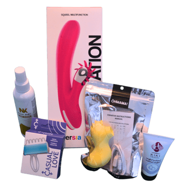 Each package we send includes at least one main item, a hygiene and maintenance product, and a lubricant. Additionally, each shipment comes with surprise extras for your enjoyment.